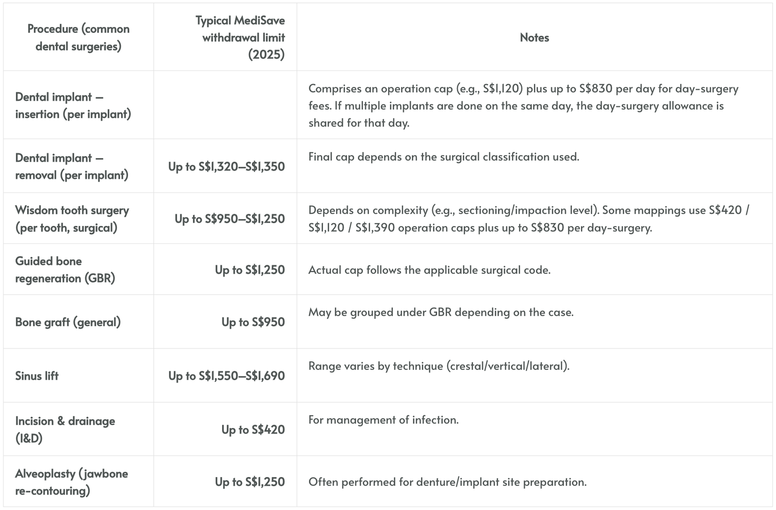 Medisave can be used to cover a range of dental surgical procedures approved by the Ministry of Health (MOH). This includes treatments such as dental implant surgery, wisdom tooth surgery, bone grafting, and other oral surgical procedures. At Meiplus Dentalcare, we assist patients in using their Medisave account to reduce out-of-pocket costs while ensuring treatment is carried out safely and in line with MOH guidelines.